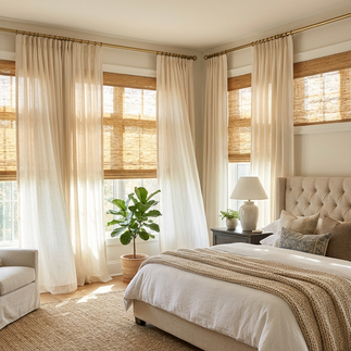 Woven Wood Shades (unlined) | Good | Good (warm, filtered) | Kitchens, casual living spaces |
